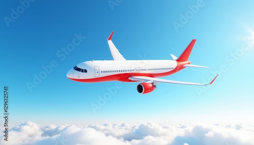 Obraz premium Flying airliner in clear blue sky, travel inspiration