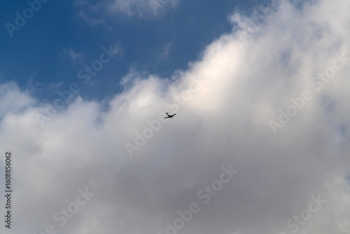 Fototapeta premium flying airplane with clouds in the sky