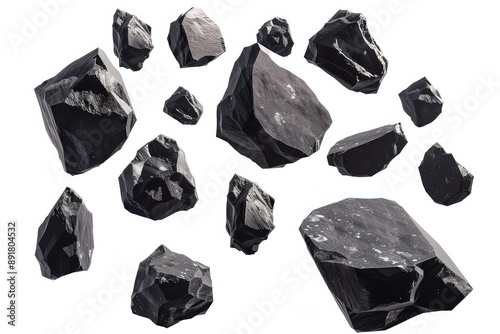 © si9nzation, Naklejka premium Flying asteroids or stone meteorite in the space isolated on white