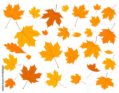 Fototapeta premium Flying Autumn Leaves Vector | Windy Fall Leaf Collection Illustration.