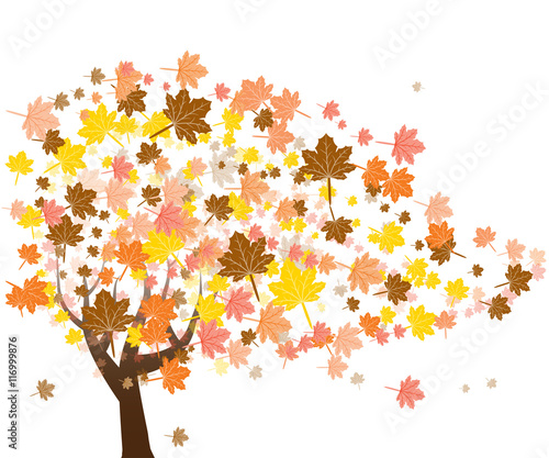 © Phrygian, Fototapeta premium Flying autumn leaves with copy space. Vector autumn background.