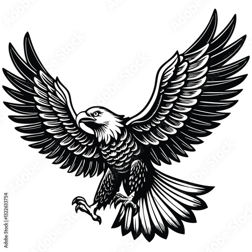 Obraz premium Flying Bald Eagle black and white Silhouette vector
