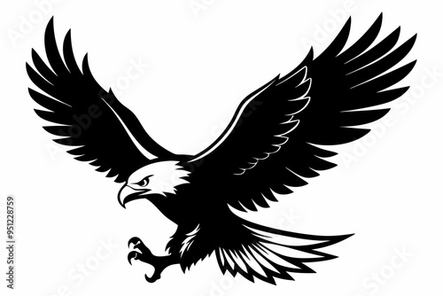Obraz premium Flying Bald Eagle black and white Silhouette vector, A Bald Eagle black...