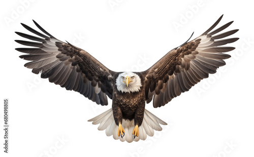Fototapeta premium Flying Bald Eagle Front View Isolated on Transparent Background