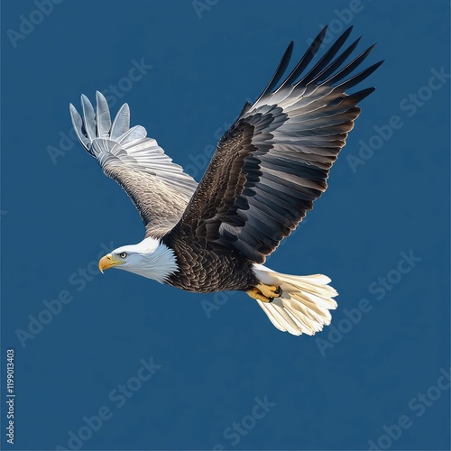 © Safdar, Naklejka premium Flying Bald Eagle in amazing look, clipart on blue background