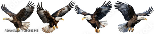 Fototapeta premium Flying bald eagle with wings spread in motion on transparent background