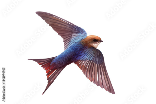 © Prazis Images, Fototapeta premium Flying Barn Swallow hand drawn watercolor bird illustration
