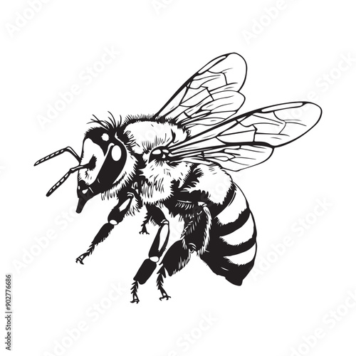 Fototapeta premium Flying Bee Drawing Images vector isolated on white background