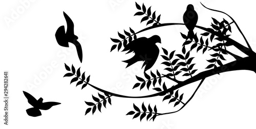 © gunayaliyeva, Fototapeta premium Flying bird branch silhouette illustration