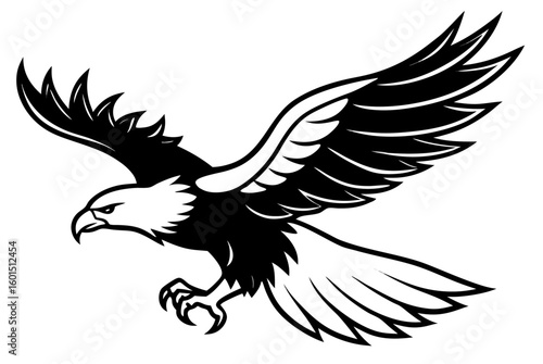 Obraz premium Flying bird icon, tribal black silhouette eagle with wings illustration