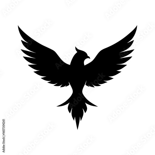 © MD, Fototapeta premium Flying bird in open wings position shown in natural minimalist silhouette