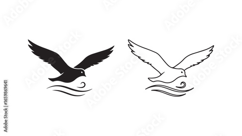 © Al, Obraz premium Flying bird over water outline style with transparent background