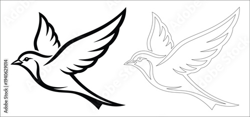 Fototapeta premium Flying bird silhouette and outline illustration