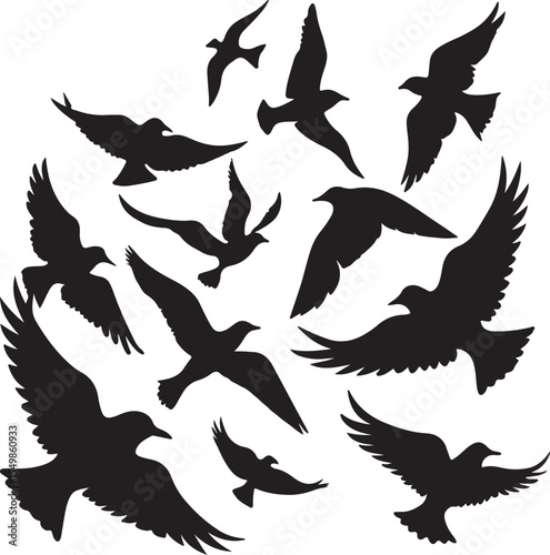 Fototapeta premium Flying Bird Silhouette Set – multiple birds in flight with varied wing positions.