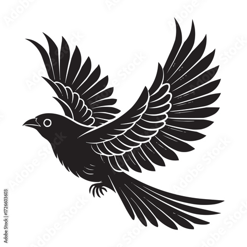 © Graphix Glider, Obraz premium Flying Bird Silhouette Vector – Elegant Black Bird with Open Wings Illustration