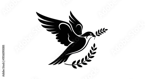 © geol, Fototapeta premium Flying bird silhouette with olive branch
