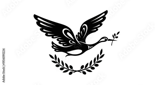 © geol, Fototapeta premium Flying bird silhouette with olive branch