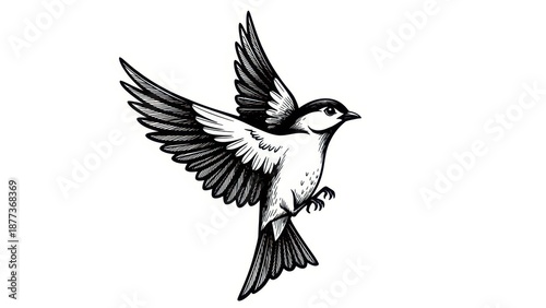 Fototapeta premium Flying bird sketch illustration