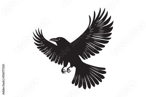 Obraz premium Flying Bird with Spread Wings Silhouette - Black and White Vector Art