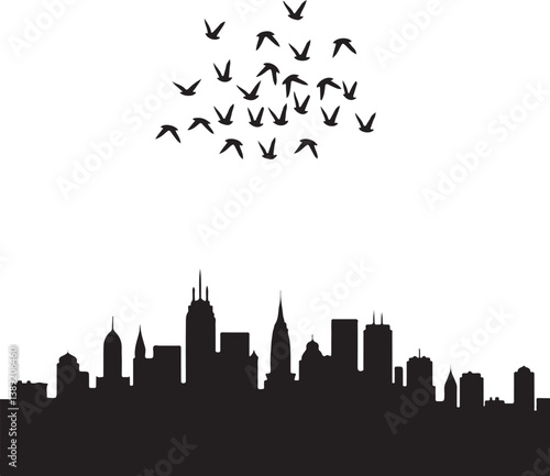 © Rokeyadesigner, Naklejka premium Flying Birds City Skyline Bundle