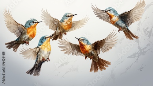 © rehman, Obraz premium Flying birds group transparent. Birds isolated on white.