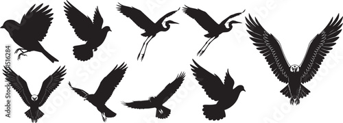 Fototapeta premium Flying birds in various breeds vector illustration