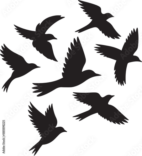 © Hasho , Obraz premium Flying birds. Silhouette vector illustration with white background.