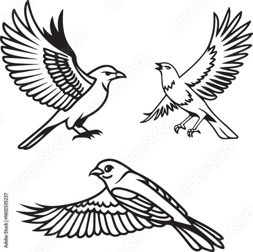 Obraz premium Flying Birds Silhouette Vector Set – Black and White Bird Illustration for...