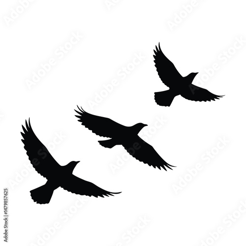 © Md_ratul, Obraz premium Flying birds silhouettes on a white background, vector illustration
