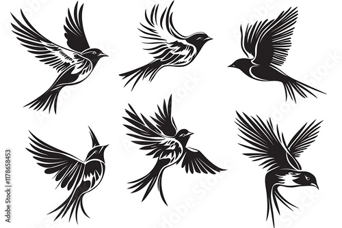 © MdRaselMahmud, Obraz premium Flying birds silhouettes on white background.