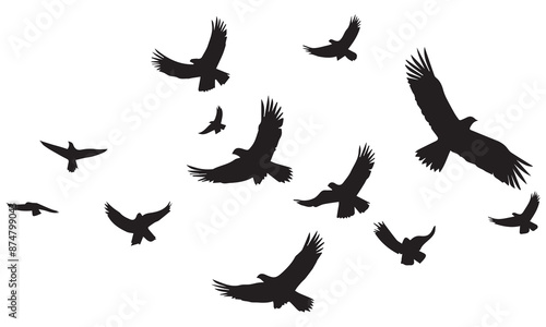 © shopone, Obraz premium Flying birds silhouettes on white background. Vector illustration. isolated bird flying. tattoo design