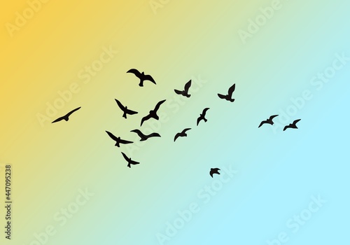 Fototapeta premium Flying birds silhouettes. Wallpaper, background design
