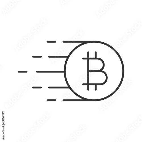 Obraz premium Flying bitcoin linear icon