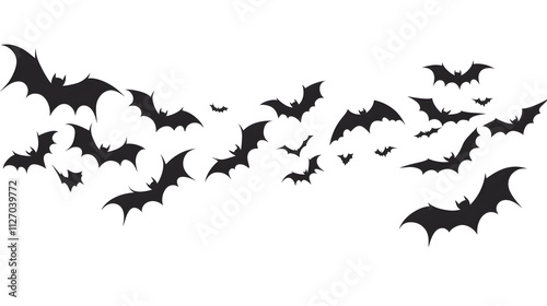 Fototapeta premium Flying black bats flat style illustration isolated on white background