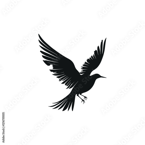 Naklejka premium Flying Black Bird with Minimalist Composition