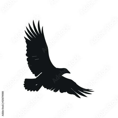 © dedi, Fototapeta premium Flying Black Bird with Minimalist Composition