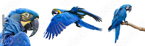 © Giu Studios, Fototapeta premium Flying Blue Macaw and Blue Parrot Set, Close Up, Showcasing Half and Full Body Views, Isolated on Transparent Background, PNG