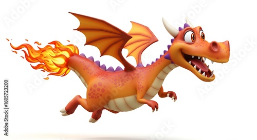 Fototapeta premium Flying cartoon dragon with flames