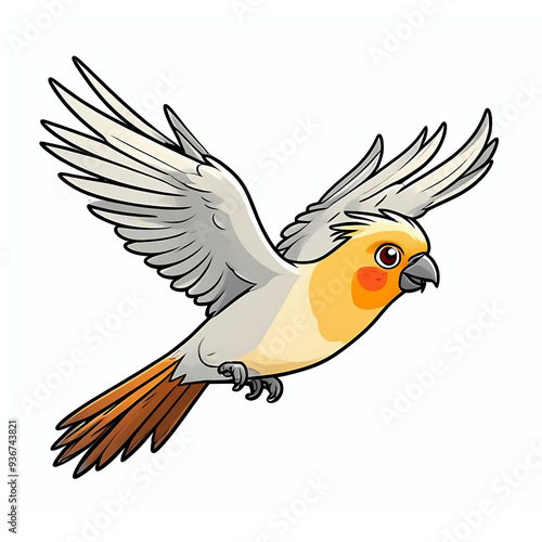 © Chris, Obraz premium Flying cockatiel cartoon illustration, parrot bird clip art element