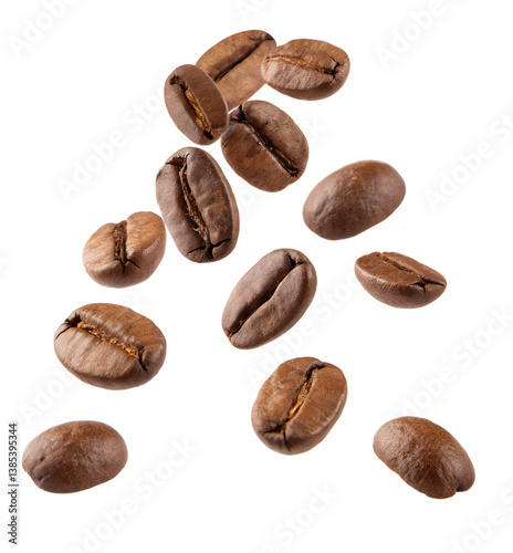 Obraz premium Flying coffee beans isolated on transparent background
