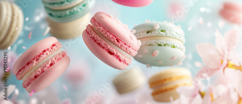 Obraz premium flying colored macaroons