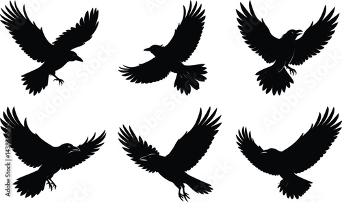 © Love, Obraz premium Flying Crow Silhouette vector illustration