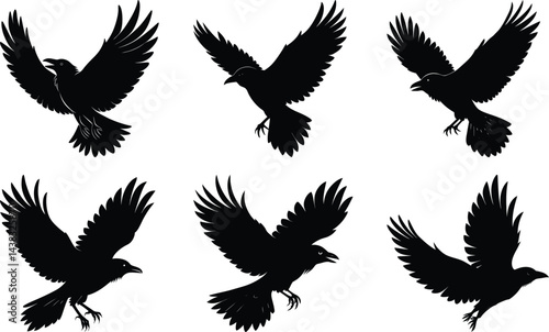 © Love, Obraz premium Flying Crow Silhouette vector illustration