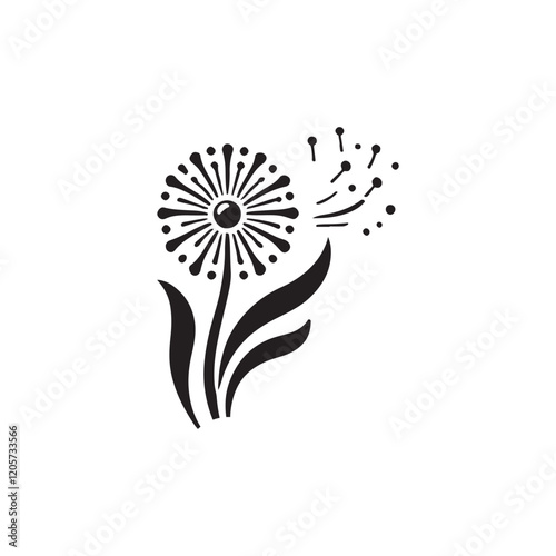© MFvectorpalace, Obraz premium Flying dandelion silhouette vector with a white background