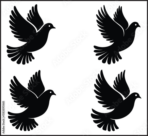 Obraz premium Flying Dove Bird Silhouettes - Peace Symbol Icon Set Black Design