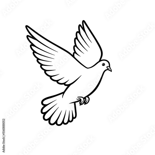© Anastasiya, Fototapeta premium Flying dove illustration in simple line art style