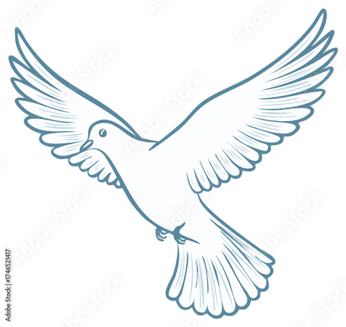 Obraz premium Flying Dove of Peace with Spread Wings Line Art Vector Illustration