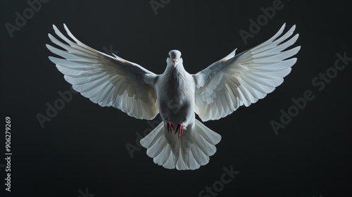 Fototapeta premium Flying dove. Pigeon on a black background.