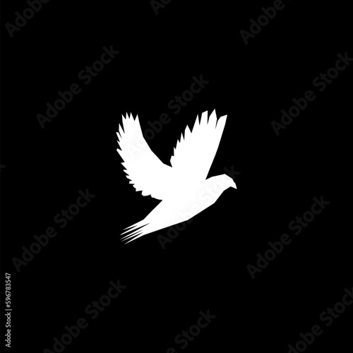 Obraz premium Flying dove silhouette, icon isolated on black background