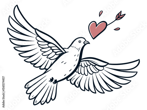 Fototapeta premium Flying Dove with Heart Symbol on White Background for Love and Peace Art